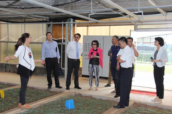 2016年7月6日上午,天津天士力中藥科技發(fā)展有限公司董事長劉巖、云南天士力三七種植有限公司總經(jīng)理韋美膛、文山三七數(shù)字本草檢驗中心有限公司總經(jīng)理張?zhí)m蘭一行到云三七仿生種植工廠進行調(diào)研。云南三七科技有限公司首席信息官辛文鋒博士、石林基地行政負責人趙樹林、三七仿生種植部部長方海燕,建管中心王昌等人陪同調(diào)研。