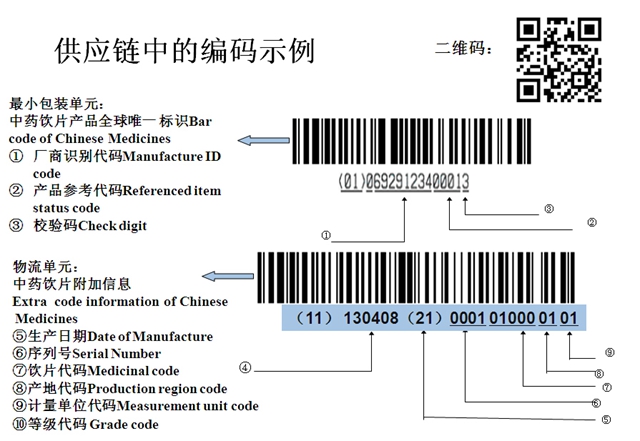 《中藥在供應鏈管理中的編碼與表示》(GB/T 31775-2015) 編碼示例圖