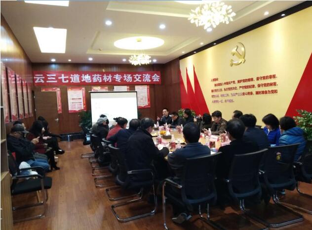 參觀完畢,三七科技副總經理辛文鋒博士就云三七產品特點、全產業鏈運營模式和云三七品牌運作之道做了主題交流。辛文鋒博士詳細介紹了三七的基本概況、藥理藥效和臨床應用;從安全性、有效性方面闡釋了云三七的產品特點;生動講述了云南三七科技有限公司作為國有控股企業和三七產業龍頭,面對產業危機開展的云南省首次三七資源普查、帶頭開展三七戰略收儲、申請并協助三七地方標準功能主治修訂、三七品牌傳播、三七全程質控溯源體系建設等行業貢獻和社會擔當;深刻分析了面對“十三五”云南省三七產業千億目標,公司的戰略定位和產業布局。